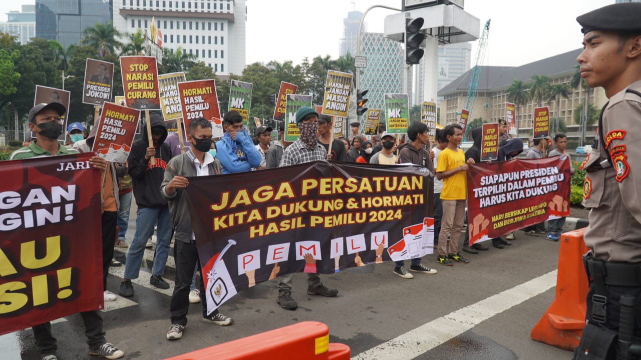 Dalam aksinya, mereka memberikan dukungan kepada hakim MK agar bebas dari segala bentuk intervensi dari pihak manapun dan meminta agar semua pihak menghormati hasil Pemilu 2024.