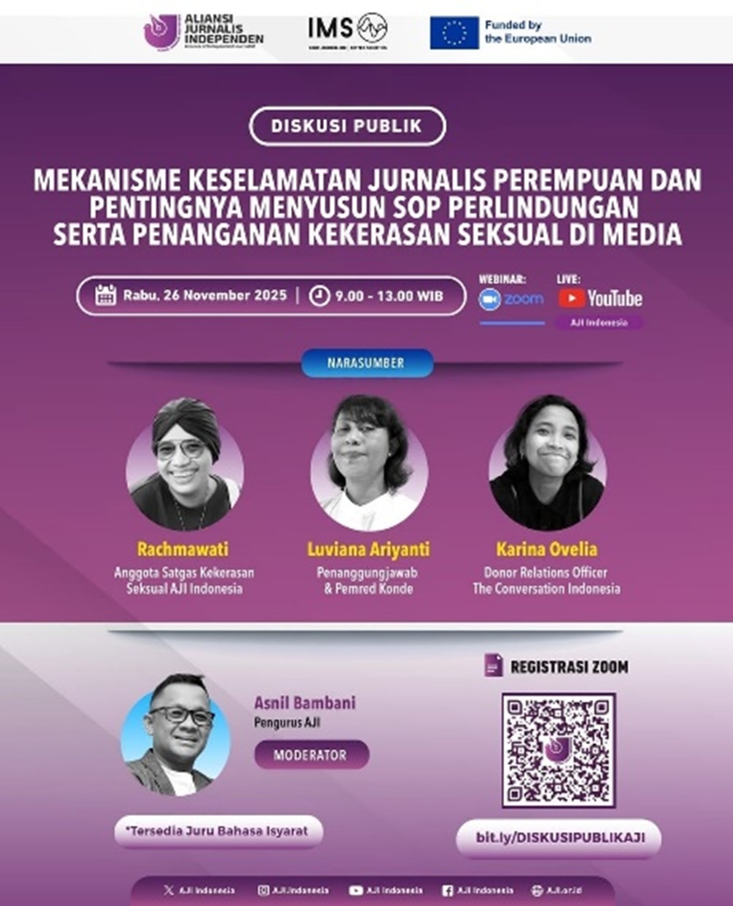 Topik: Mekanisme Keselamatan Jurnalis Perempuan dan Pentingnya Menyusun SOP Perlindungan serta Penanganan Kekerasan Seksual di Media.